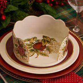 Deixe sua mesa ainda mais especial com nosso Porta Panetone Aberto Encanto Dourado de Cerâmica da Scalla!