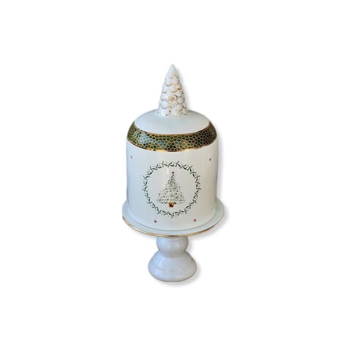 Estes são ideais para quem gosta de uma mesa posta mais sofisticada, pois possuem detalhes de filetos dourados, trazendo sofisticação e elegância. Material: cerâmca Tamanho: g Mede 33cm de altura. Base do porta panetone tem 18cm de largura. Tampa do panetone tem 15,5cm de largura. Marca: Não Informado