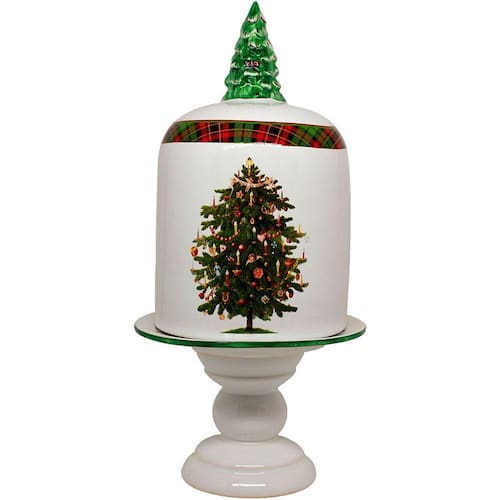 01 Porta Panetone de Cerâmica Natal Arvore Xadrez 500g