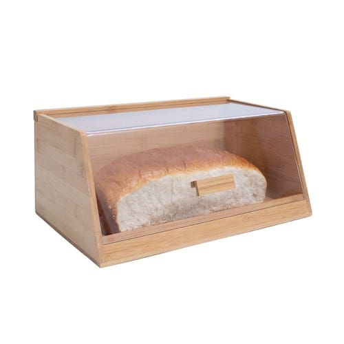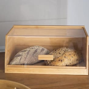 Porta Pão de Bambu Oikos com Tampa Transparente 35cm Retangular