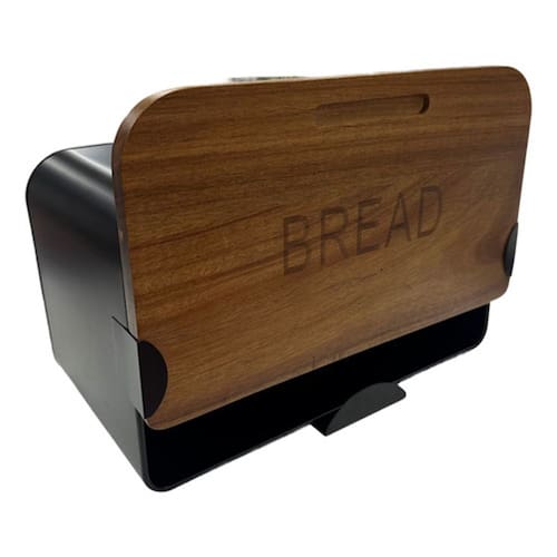 Porta pao com design moderno e funcional, ideal para manter paes frescos e organizados. Estrutura em metal resistente com tampa deslizante em madeira, que proporciona um toque rustico e elegante a cozinha. Com dimensoes de 35x20x22 cm, oferece otimo espaco interno para armazenar diversos tipos de paes e quitandas. A porta deslizante facilita o uso no dia a dia, ocupando menos espaco ao abrir. Pratico, duravel e facil de limpar, e perfeito para compor a decoracao da bancada com estilo e funcionalidade.