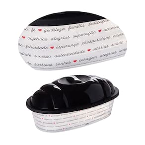 Porta Pão com Tampa Preta e Estampa de Palavras Positivas – Design Moderno e Inspirador