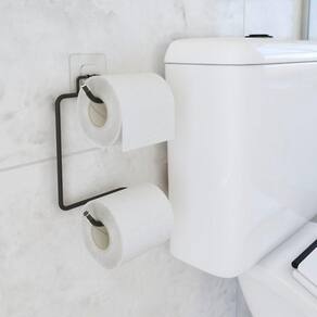 Porta Papel Higiênico Banheiro para Dois Rolos com Adesivo - Stolf Preto -