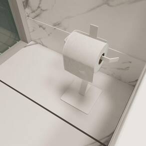 Especificações Técnicas Suporte Cor: Branca Dimensão Base: 13x13cmAltura: 30cm Largura da Hastes do Papel Higiênico: 15cm