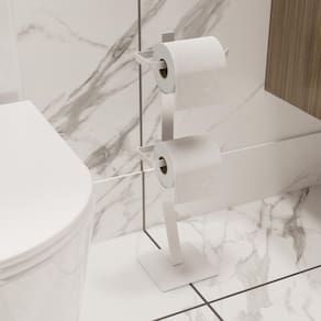 Porta Papel Higiênico Chão Papeleira Reserva Branco Duplo Porta Papel Higiênico de Chão Branco Duplo