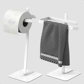 Este conjunto inclui 1 porta papel higiênico de chão e 1 porta toalha lavabo de bancada.