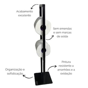 A estrutura é meticulosamente construída com perfil tubular de aço de 15x15mm, proporcionando durabilidade e estabilidade. Sua pintura eletrostática na cor preta não apenas adiciona um toque de sofisticação, mas também oferece resistência a arranhões e oxidação, garantindo que seu porta papel higiênico mantenha sua beleza ao longo do tempo.