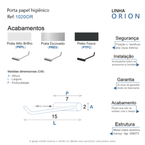 Além de decorar, organiza com funcionalidade o banheiro. Criado em metal nobre com uma qualidade que abrange áreas litorâneas e possui a garantia de um acabamento muito resistente.
