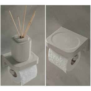 O porta papel higiênico de parede Ou da Linha Eleve oferece fixação segura e resistente com o adesivo Ultra Click, sem necessidade de furos ou danos à superfície. O produto mantém o papel higiênico protegido e discreto, seu design funcional facilita a reposição do rolo, enquanto a superfície superior é ideal para apoiar pequenos objetos, com celular ou lenço umedecido. Feito com material resistente, suporta ambientes úmidos e leva sofisticação para o seu banheiro.