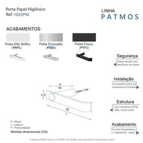 ITENS ENVIADOS: 1 porta papel higiênico, kit de parafusos e manual instrução instalação.