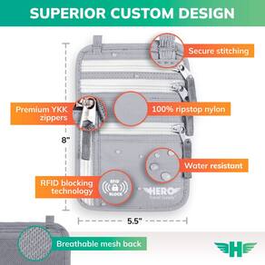 - Acessibilidade simplificada: um design elegante e fácil de usar, confortável e leve. Nossa carteira Hero Neck facilita adicionar ou remover itens, incluindo passaportes e smartphones grandes, para acesso rápido a viagens.