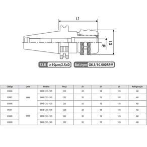 ESPECIFICAÇÕES DO PORTA PINÇA AUTO TORQUE MODELO SK40 C32 - 135 - DIN 69871