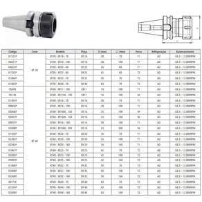 ESPECIFICAÇÕES DO PORTA PINÇAS ER MODELO BT50 ER40 - 100 - MAS 403 BT