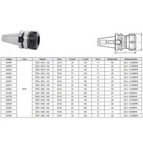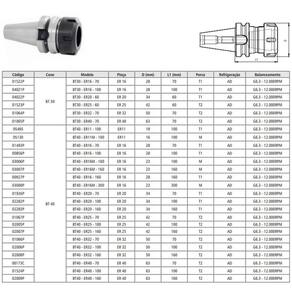 ESPECIFICAÇÕES DO PORTA PINÇAS ER MODELO BT50 ER50 - 100 - MAS 403 BT