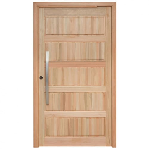 Porta pivotante de almofadas. Composta por: 1 folha de porta, marco, guarnições para um lado, dobradiças pivotantes, fechadura e puxador. Marco simples. Folha de porta de 1,20m. Fechadura Alavanca Stam. Peitoril removível, para instalação sobre o piso, reduzindo em 3 cm a altura do marco (de 2,17 passa para 2,14). Produto pronto para instalação. Acompanha Batedor: Sim Acompanha Batente: Sim Acompanha Dobradiça: 02 Acompanha Fechadura: Sim Acompanha Guarnição: Sim Acompanha Manual de Instalação: Sim Acompanha Puxador: 01 Acompanha Trinco: Não Altura: 217 cm codigo_ean: 7899641816957 Cor: Natural Cor do Batente: Marrom Cor do Produto: Natural Elétrica: Não Escala de Brilho: Fosco Espessura: 3 cm Itens Inclusos: 1 Folha De Porta, Marco, Guarnições Para Um Lado, Dobradiças Pivotantes, Fechadura, Manual E Puxador. Lado de abertura: Direita Largura: 127 cm Largura do Batente: 9,4 cm Manual de Montagem e Instalação: https://product-hub-prd.madeiramadeira.com.br/664138/documents/c414838d-daad-4f56-822b-bbcf96b00755vaodasesquadriasconvertido.pdf Marca: Rondosul Material da Dobradiça: Aço Material do Batente: Madeira Material Principal: Madeira Maciça Medida do Vão: 220cmx130cm Necessita Montagem: Não Número de Folhas: 01 Origem do Produto: Nacional Peso: 68 kg Possui Grade: Não Preenchimento da Porta: Maciça Recomendações de Uso, Manutenção e Limpeza: O Produto Deve Ser Pintado E Bem Instalado Para Haver Garantia. Produto Sem No Mínimo Duas Demãos De Pintura E/Ou Mal Instalado E/Ou Mal Conservado São Situações Que Não São Aceitas Pela Garantia. Aconselhamos A Imunização Contra Insetos (Cupim) Com Produto Adequado, Pois A Madeira Não É Tratada Na Fábrica. Textura da Porta: Almofadada Tipo de Dobradiça: Simples Tipo de Madeira: Eucalipto Tipo de Porta: Pivotante Tipo de Puxador: Externo Vidro incluso: Não Marca: Não Informado