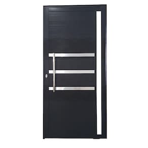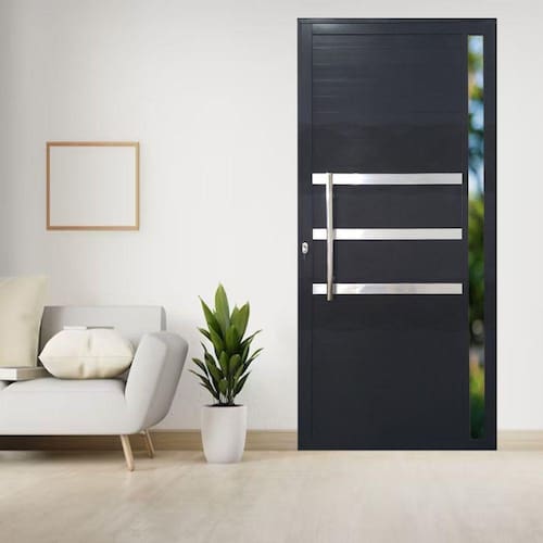 Porta Pivotante de Alumínio Preto Com Puxador, Friso e Vidro Linha Veneza - Bergame