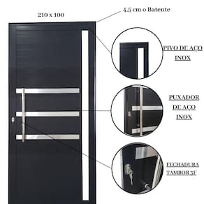 Aplicado em local: interno ou externo Ambientes Recomendados: Externo;Interno Acabamento do Puxador: Inox Acompanha Batedor: Não Acompanha Batente: Sim Acompanha Fechadura: Sim Acompanha Guarnição: Não Acompanha Manual de Instalação: Sim Acompanha Puxador: 02 Acompanha Trinco: Não Altura: 210 cm codigo_ean: 7898683667121 Cor: Preto Cor do Batente: Preto Cor do Produto: Preto Cor Predominante: Preto Dimensão da Máquina da Fechadura: 25.0000 Escala de Brilho: Semi-Brilho Isolamento Acústico: Não Itens Inclusos: 1 Porta Lado de abertura: Direita Largura: 100 cm Largura do Batente: 4,5 cm Linha ou Coleção: Linha 25 Manual de Montagem e Instalação: https://product-hub-prd.madeiramadeira.com.br/863682/documents/c72a6c84-da7d-47bb-9e15-fb6fa9c72502uCOesdeinstalaCAopivotante.pdf Material do Batente: Alumínio Material do Puxador: Aço Material Principal: Alumínio Necessita Montagem: Não Número de Folhas: 01 Origem do Produto: Nacional Peso: 16 kg Possui Grade: Não Tamanho: 210 x 100 cm Textura da Porta: Frisada Tipo de Parede: Alvenaria Tipo de Porta: Abrir Tipo de Puxador: Externo Vidro incluso: Não Marca: Esquadrias Bergamo Ean: 7898683667121