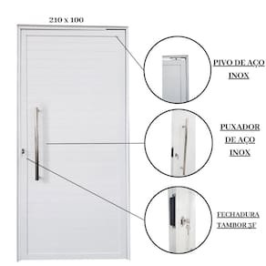 Aplicado em local: interno ou externo Ambientes Recomendados: Externo;Interno Acabamento do Puxador: Inox Acompanha Batedor: Não Acompanha Batente: Sim Acompanha Fechadura: Sim Acompanha Guarnição: Não Acompanha Manual de Instalação: Sim Acompanha Puxador: 02 Acompanha Trinco: Não Altura: 210 cm codigo_ean: 7898683666414 Cor: Branco Cor do Batente: Branco Cor do Produto: Branco Cor Predominante: Branco Dimensão da Máquina da Fechadura: 25.0000 Escala de Brilho: Semi-Brilho Espessura: 4,5 cm Isolamento Acústico: Não Itens Inclusos: 1 Porta Lado de abertura: Esquerda Largura: 100 cm Largura do Batente: 4,5 cm Linha ou Coleção: Linha 25 Manual de Montagem e Instalação: https://product-hub-prd.madeiramadeira.com.br/862633/documents/00d06d2b-2930-4c8f-b630-95d1b17528b6uCOesdeinstalaCAopivotante.pdf Material do Batente: Alumínio Material do Puxador: Aço Material Principal: Alumínio Necessita Montagem: Não Número de Folhas: 01 Origem do Produto: Nacional Peso: 16 kg Possui Grade: Não Tamanho: 210 x 100 cm Textura da Porta: Lisa Tipo de Parede: Alvenaria Tipo de Puxador: Externo Vidro incluso: Não Marca: Esquadrias Bergamo Ean: 7898683666414