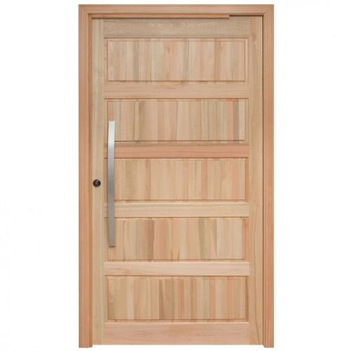Porta pivotante de Lambris. Composta por: 1 folha de porta, marco, guarnições para um lado, dobradiças pivotantes, fechadura e puxador. Marco simples. Folha de porta de 1,00m. Fechadura Alavanca Stam. Peitoril removível, para instalação sobre o piso, reduzindo em 3 cm a altura do marco (de 2,17 passa para 2,14). Produto pronto para instalação. Acompanha Batedor: Sim Acompanha Batente: Sim Acompanha Dobradiça: 02 Acompanha Fechadura: Sim Acompanha Guarnição: Sim Acompanha Manual de Instalação: Sim Acompanha Puxador: 01 Acompanha Trinco: Não Altura: 217 cm codigo_ean: 7899641816933 Cor: Natural Cor do Batente: Marrom Cor do Produto: Natural Elétrica: Não Escala de Brilho: Fosco Espessura: 3 cm Itens Inclusos: 1 Folha De Porta, Marco, Guarnições Para Um Lado, Dobradiças Pivotantes, Fechadura, Manual E Puxador. Lado de abertura: Direita Largura: 107 cm Largura do Batente: 9,4 cm Manual de Montagem e Instalação: https://product-hub-prd.madeiramadeira.com.br/664087/documents/95e704f9-82fe-49a7-808a-d8c0c9e4f3a4vaodasesquadriasconvertido.pdf Marca: Rondosul Material da Dobradiça: Aço Material do Batente: Madeira Material Principal: Madeira Maciça Medida do Vão: 220cmx110cm Necessita Montagem: Não Número de Folhas: 01 Origem do Produto: Nacional Peso: 57 kg Possui Grade: Não Preenchimento da Porta: Maciça Recomendações de Uso, Manutenção e Limpeza: O Produto Deve Ser Pintado E Bem Instalado Para Haver Garantia. Produto Sem No Mínimo Duas Demãos De Pintura E/Ou Mal Instalado E/Ou Mal Conservado São Situações Que Não São Aceitas Pela Garantia. Aconselhamos A Imunização Contra Insetos (Cupim) Com Produto Adequado, Pois A Madeira Não É Tratada Na Fábrica. Textura da Porta: Almofadada Tipo de Dobradiça: Simples Tipo de Madeira: Eucalipto Tipo de Porta: Pivotante Tipo de Puxador: Externo Vidro incluso: Não Marca: Não Informado
