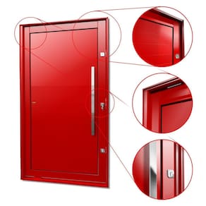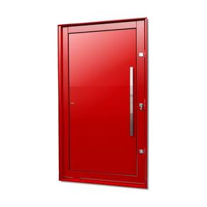 Portas Pivotante de Alumínio, Linha Elite, Pintura Eletrostática Vermelha, 1 Folha de Abrir para o Lado Direito, Lambris Horizontais, , Puxador Milão 100 Cm Polido, Altura 216 Cm, Largura 120 Cm, Requadro 11,5 Cm, Garantia de 5 anos contra defeitos de fabricação.