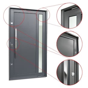 Itens Inclusos: 1 Porta Pivotante Completa, com Batente, Pivots, 1 Fechadura rolete principal e 2 fechaduras auxiliares, Vidro lateral, Puxador duplo de 100 cm.