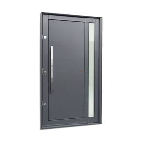 Portas Pivotante de Alumínio, Linha Elite, Pintura Eletrostática Cinza, 1 Folha de Abrir para o Lado Esquerdo, Vidro Liso Incolor 5mm Temperado, Lambris Horizontais, Puxador Milão 100 Cm Polido, Altura 216 Cm, Largura 120 Cm, Requadro 11,5 Cm, Garantia de 5 anos contra defeitos de fabricação.