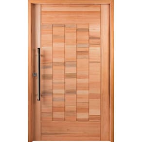A Porta Pivotante Pv97 Eucalipto 210x120cm Marroml da Cruzeiro possui design com duas linhas verticais na borda e diversas linhas horizontais ao longo do corpo. É produzida em madeira Eucalipto tipo Grandis 100% Reflorestada.