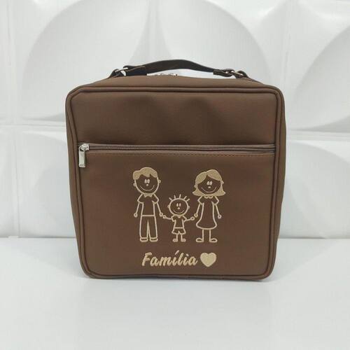 Porta Pratos Quadrado Personalizado Família Amor Marrom - Coutre Bolsas - Bolsa Quadrada Marrom Porta Pratos Personalizado Família Amor Lindo Presente - Coutre Bolsas