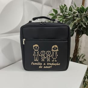 Porta Pratos Quadrado Personalizado Família Feliz Preto - Coutre Bolsas - Bolsa Quadrada Preto Porta Pratos Personalizado Família Feliz Lindo Presente - Coutre Bolsas