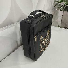 Nossa Bolsa Porta Prato é toda acolchoada. Possui um bolso frontal e um bolso interno com zíper para levar objetos. O compartimento principal possui forração interna branca e impermeável para facilitar a limpeza (limpeza sempre com pano úmido e detergente neutro – nunca utilizar produtos químicos). Cabe 6 pratos grandes com folga. Acompanha uma Bolsa porta talher para levar os talheres protegidos. Possui uma alça de mão para facilitar o transporte. Trabalhamos com material sintético de alta qualidade e durabilidade. Não hidrolisa (não descasca). Metais Niquelados.