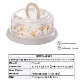 Porta Queijo Queijeira de Plástico Redonda Plasutil - Flores