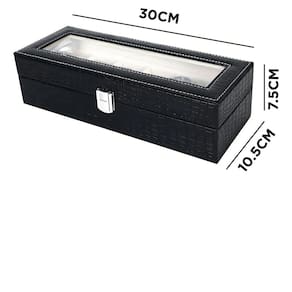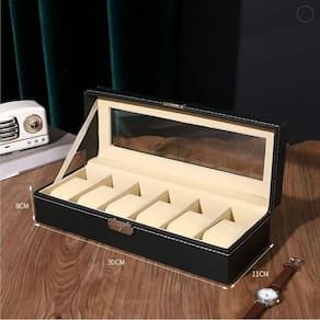 Com dimensões de 30 cm de comprimento, 11 cm de largura e 8 cm de altura, este estojo é compacto, mas ao mesmo tempo espaçoso o suficiente para acomodar até seis relógios. O design estilizado e sofisticado torna este produto não apenas um organizador funcional, mas também uma peça decorativa que adiciona um toque de classe ao seu espaço.