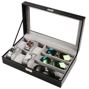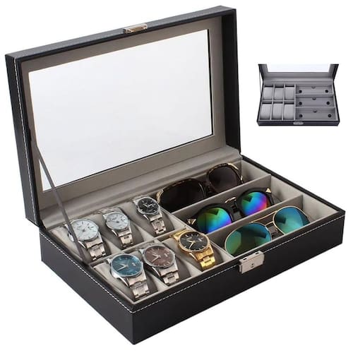 Deixe os seus relogios organizados com o nosso lindo porta relogio. Produzido em material resistente e duravel, possui 9 compartimentos para organizar não apenas relogios, mas também pulseiras, óculos de sol, o que mais desejar. Seu interior é revestido de camurça e mantém os relógios seguros e livres de arranhões. A tampa possui transparencia para melhor visualização dos relógios. Cada compartimento acompanha 6 almofadas.