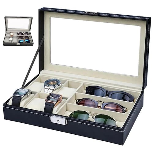 Deixe os seus relogios organizados com o nosso lindo porta relogio. Produzido em material resistente e duravel, possui 9 compartimentos para organizar não apenas relogios, mas também pulseiras, óculos de sol, o que mais desejar. Seu interior é revestido de camurça e mantém os relógios seguros e livres de arranhões. A tampa possui transparencia para melhor visualização dos relógios. Cada compartimento acompanha 6 almofadas.