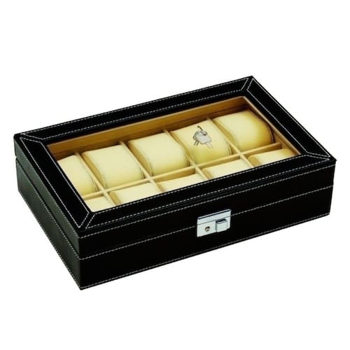 Invista nesta experiência, produtos de ótima qualidade e excelente custo beneficio, confira PORTA RELOGIOS EM CAIXA DE COURO SINTETICO. Dimensões desse produto: Altura: 9, Largura:23 ,Profundidade:33 e Peso:0,4