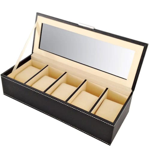 Porta Relógios em Couro Sintetico Preto com 5 Divisórias Cód: TH0021A