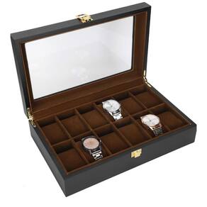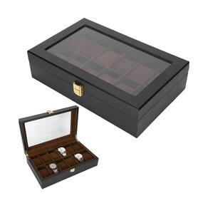 Maleta 12 Relógios em Madeira Escura Tampa Vidro/Marrom Interno CARACTERÍSTICAS DO PRODUTO: Material: madeira escura Interior: Possui almofadas e tecido aveludado Fecho: Feito em metal Tampa: Contorno em madeira com vidro no centro Medidas: Medidas do estojo: 31.5cm x 21,5cm x 8,5cm Comprimento x Largura x Altura Medidas das divisórias: 4.5cm x 9.5cm x 5.0cm Largura x Comprimento x Altura Medidas das almofadas: 4,5cm x 7,3xm x 3,5cm Largura x Comprimento x altura Marca: Ph Martins Ean: 7908289221310