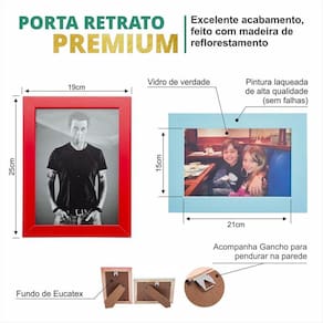 Madeira de reflorestamento livre de imperfeições com acabamento laqueado. Qualidade premium feito com maquinário de última geração Acompanha vidro de 2mm liso incolor Medida interna 15x21 cm Medida externa com borda 19x25 cm