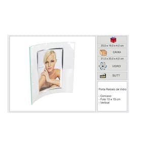 Porta Retrato elegante e clean para decoração de ambientes internos. O Porta Retrato é todo confeccionado em vidro, com moldura metálica. O suporte de apoio metálico do porta retrato permite que suas fotos 10x15 sejam expostas na vertical. Vidro Concavo