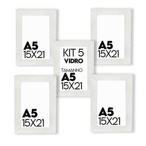 Kit com 5 unidades de Porta retrato de Vidro 15x21cm Tamanho A5