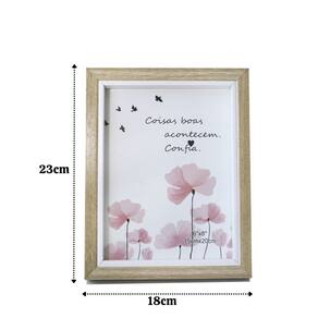 Composição: Madeira e Plástico Altura: 23 cm Comprimento: 18 cm Espessura: 2,5 cm Peso: 363 gramas Validade: Indeterminada Porta-retrato para fotos 15x20 cm