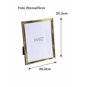 Porta Retrato em Metal Vidro 20x25 Dourado Parede Mesa Mart Porta retrato em metal e vidro para fotos de 20x25cm na cor dourado Porta retrato em metal com vidro, com excelente qualidade. Possui pé para estar sobre superficies e ganchos para parede. Pode ser Utilizado na vertical e horizontal. Perfeito para sua decoração, com seu design moderno destaca suas imagens e transforma o ambiente. Com visor de vidro que protege a foto e moldura com detalhe em baixo relevo. Obs. Sua cor metalizada muda conforme a luz. Características do produto: Cor: Dourado Material: Metal e Vidro Material de trás: Papelão resistente aveludado Foto: 20 x 25cm Medidas: 20,3cm de altura x 25,3cm comprimento Peso aproximado: 208g Quantidade: 1 Ean: 7908103725307