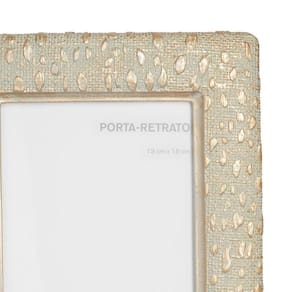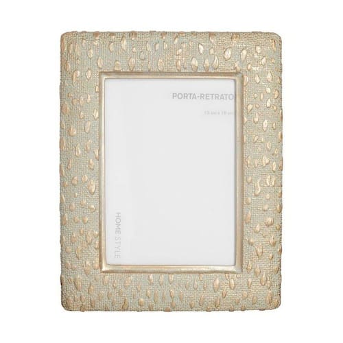 O Porta retrato Emma tem dimensões de 13 x 18 cm produzido em rezina com padronagem semelhante à animal print e detalhes dourados.
