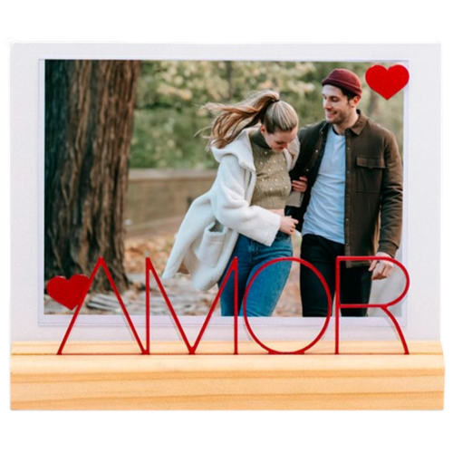 Porta Retrato foto 13x18cm Geguton Amor Branco Vermelho pinus