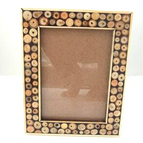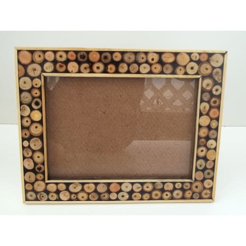 Porta Retrato feito com madeira e decorado com marchetaria envernizado.