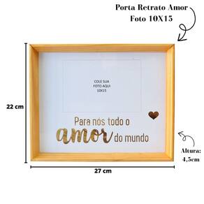 Porta Retrato Moldura de Madeira Fundo Amor Foto 10x15cm