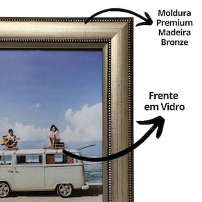 Moldura premium em madeira: elegante e resistente, com acabamento em champanhe bronze.