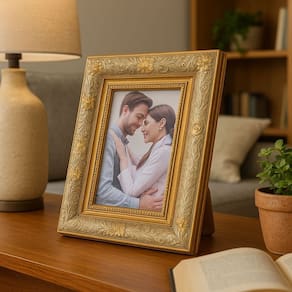 Valorize suas melhores fotos com o charme e a elegância do Porta-Retrato em Madeira Prime Decorada Dourado, ideal para compor ambientes sofisticados e destacar suas lembranças com muito bom gosto.