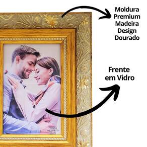 Porta Retrato Moldura Madeira Decor Dourado Para Foto 10x15