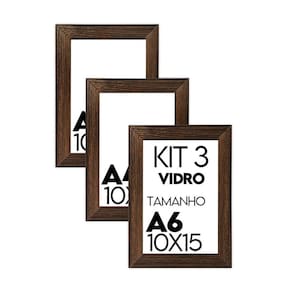 Porta Retrato Molduras para Fotos 10x15cm Kit de 3 Unidades com Vidro - caixa com 100 Unidade. 3 Porta-retratos de Vidro 10x15cm Tamanho A6 para uso na Vertical ou Horizontal Especificações: Garantia: 20 anos; Modelo: A6; Tamanho: 10x15cm; Acabamento: Madeira Revestida; Cores: Preto, Branco, Natural e Marrom; Fundo: Eucatex; Largura da Borda: 2cm; Formas de uso: Vertical, horizontal, pendurado na parede Uma ótima opção para presentear alguém ou decorar seus espaços. Transforme momentos especiais em memórias eternas com o Porta-retratos de Vidro A6! Não deixe escapar a chance de elevar sua decoração, clique agora em ""COMPRAR"" e receba o seu na comodidade de casa! Caixa: 100 Unidade Ambiente Principal: Sala de Estar Espessura: 2 mm Itens Inclusos: 3 porta-retratos 10x15 de vidro com moldura marrom Marca: ARTE PRÓPRIA Material Principal: Canvas Origem do Produto: Nacional Peso: 0,538 kg Possui Acrílico: Não Possui Vidro: Sim Quantidade de fotos: 1 Tipo de porta-retrato: Kit de porta-retratos Marca: ARTE PRÓPRIA